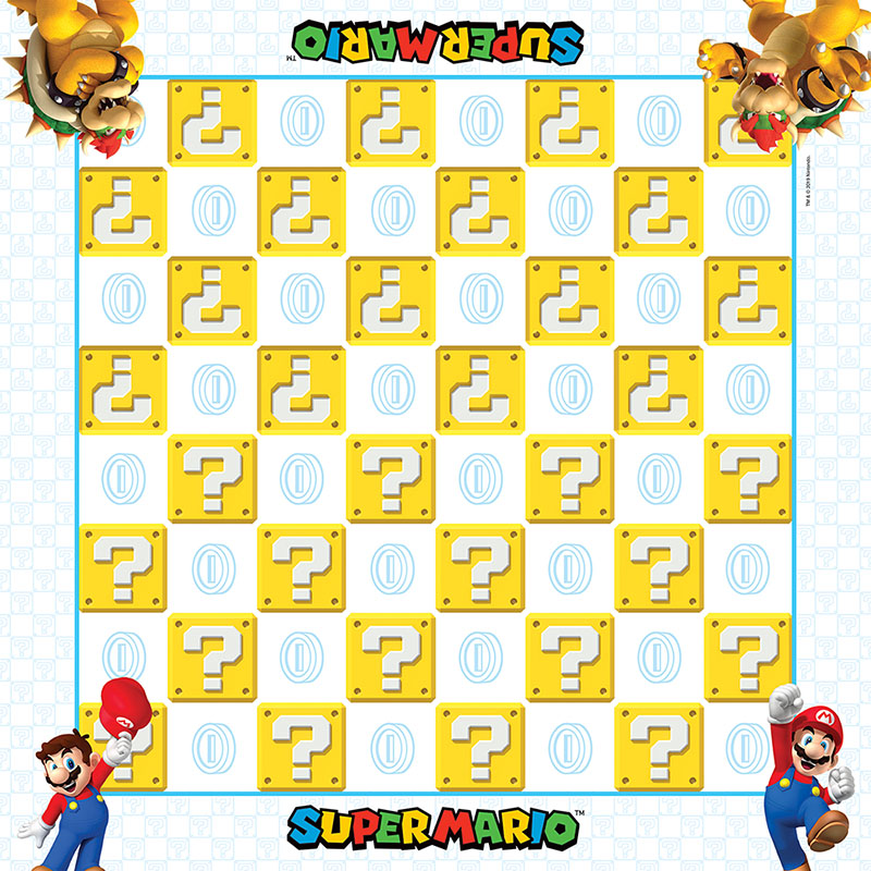 Join Mario™ and Bowser™ and celebrate one of the greatest rivalries in video games with this collectible Super Mario & Bowser Checkers / Tic-Tac-Toe set. Power up your video game collection with this fun spin on classic games ? it’s as much fun to display as it is to play! The checkers set features the Mushroom Kingdom’s ultimate hero and villain in this fun twist on two classic strategy games! Leave the capturing up to Super Mario and Bowser as players jump, collect, and “King” their custom game pieces across the checkerboard. The opposite side includes a TicTacToe gameboard!