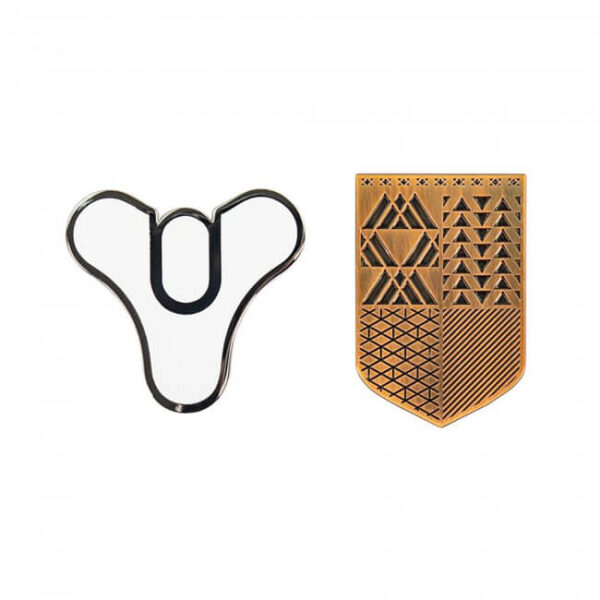 Set of 2 x Premium Metal &Enamel pins.? Highly collectible ? a musthave for all Destiny fans!? Each pin is approximately:35mm x 30mm (1.4? x 1.1?)? Comes on thick cardboardbacking card