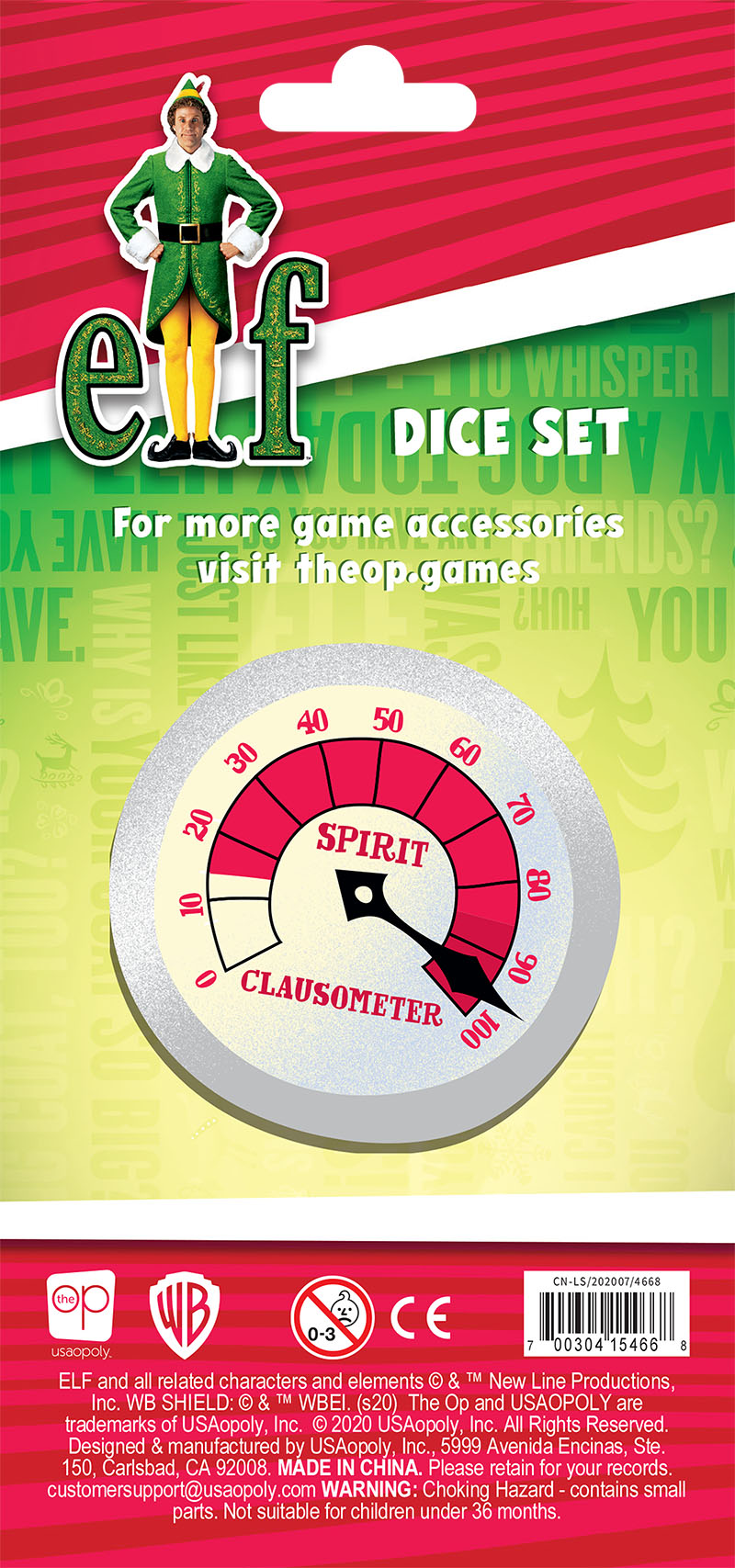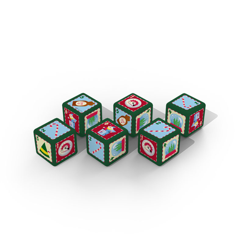 Take some Christmas spirit to your next game night with this North Pole-approved set of dice! This 6-sided dice set features symbols from the hilarious holiday film including the Elf Spirit Clausometer, food groups Candy Cane and Syrup, Buddy’s hat, New York snow globe, and Jack in the Box.
