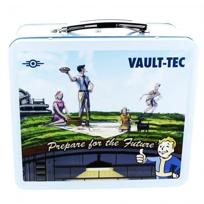 As seen in Fallout Shelter, Fan Wraps presents the Vault-Tec Tin Tote Replica! This awesome lunchbox depicts artwork of a pre-nuclear fallout society. Sturdy metal construction. Officially licensed.
