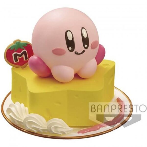 The Kirby on Star Cake Paldolce Collection Vol.2 Statue measures about 2 1/4-inches tall and comes packaged in a closed box.