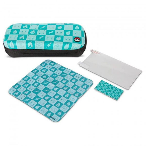 Protection Case Kit for Nintendo Switch Lite – Pok?mon Checkerboard: Turquoise This officially licensed case featuring a checkerboard pattern of Pok?mon faces and icons, will protect and store your Nintendo Switch Lite and includes screen protector, cleaning cloth, and additional storage.
